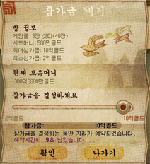 ÃÖ¼Ò·Î µé°í °¡¾ß ÇÏ´Â Âü°¡±Ý ÀÔ´Ï´Ù. ÃÖ¼Ò Âü°¡±ÝÀ» ³¾ ¼ö ¾ø´Â °æ¿ì °ÔÀÓ¿¡ Âü¿© ÇÒ ¼ö ¾ø½À´Ï´Ù. |